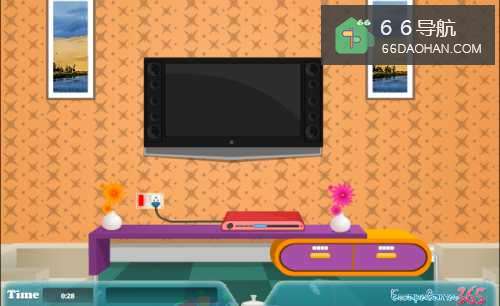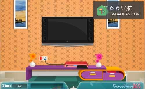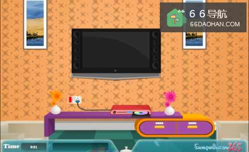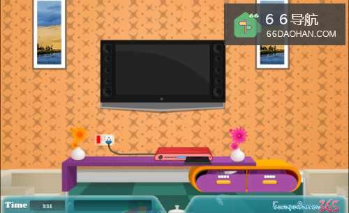 4点击中间的箭头到达场景1,查看电视,打开插座的开关。