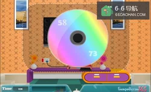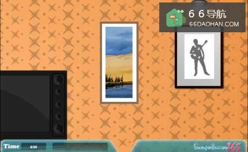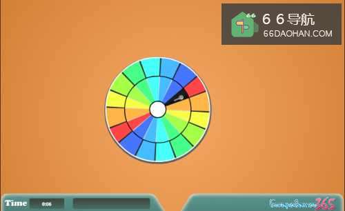 点击中间的箭头到达场景2,查看左面的墙壁,转动内圈的转盘八次得到钥匙。