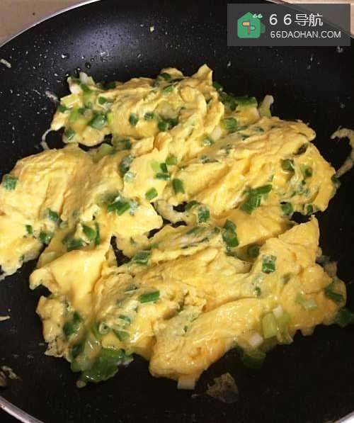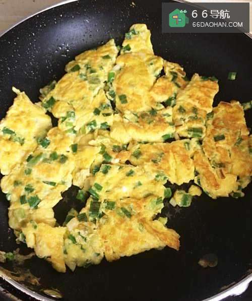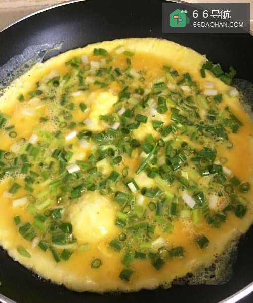 5煎至一面有些凝固的时候就可以撒入葱花了;