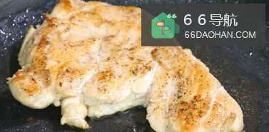2取平底锅,开火倒油,鸡胸肉煎至两面金黄。
