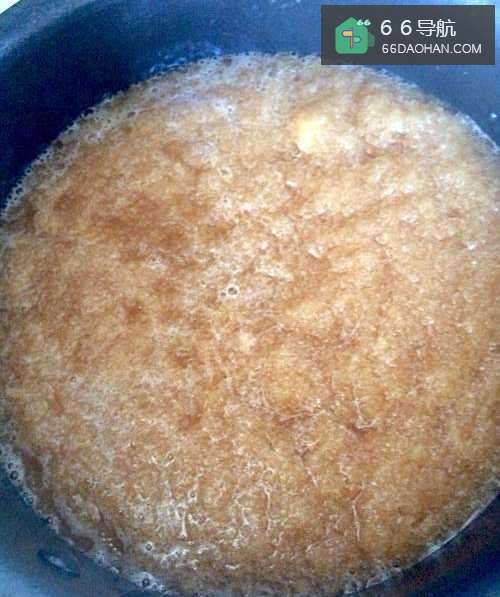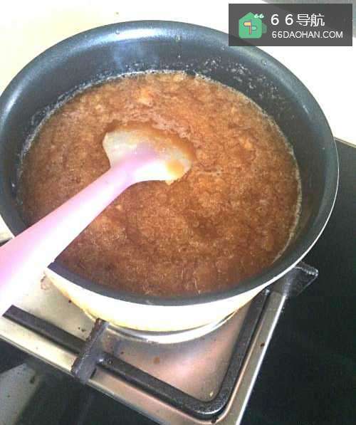 5把打好的苹果蓉倒入不粘锅加入冰糖小火熬制;
