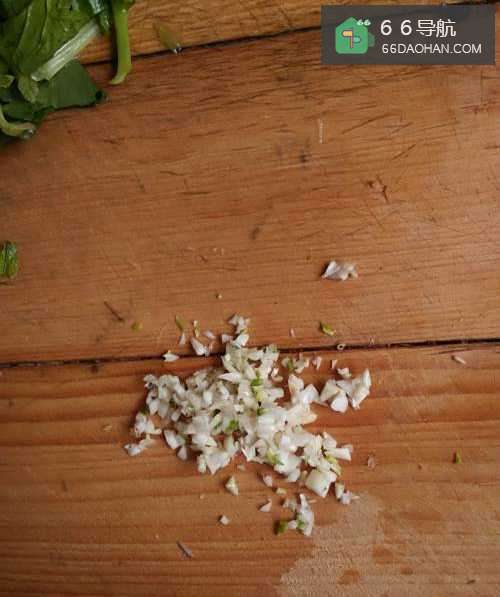 3烧水的时候,用刀将蒜切成蒜末备用,切得越碎越好。