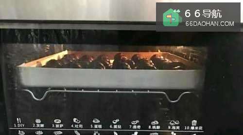 7把板栗放入预热好的烤箱里,放在中间层,时间设置25分钟。
