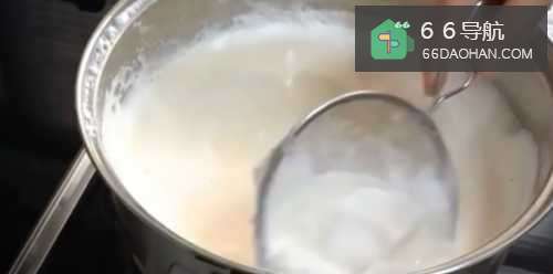 4把豆浆放进锅里面煮开,撇走表面的泡沫,继续煮10分钟