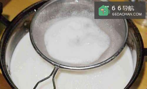 5把火关掉,然豆浆冷却到85度左右,加入食用盐卤,一边加一边搅拌