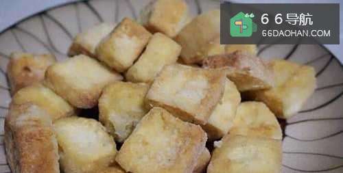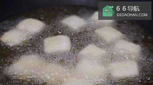 5油锅做热到6成热,接着放入豆腐煎到四面金黄。