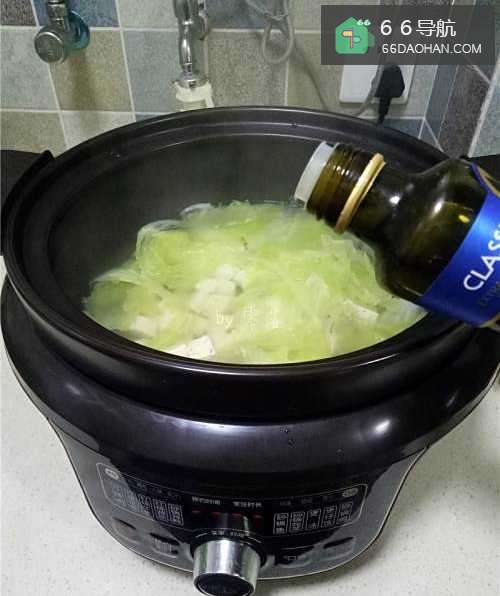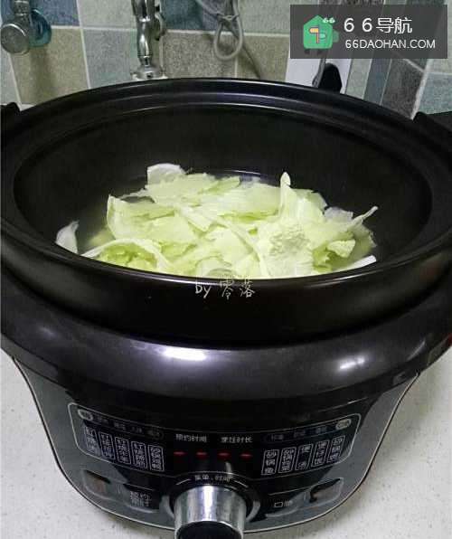 5放入白菜,调入适量盐;启动“再加热”功能,再煮2分钟;