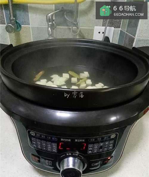 3电砂锅里倒入适量清水;放入姜片;接通电源,启动“再加热”功能,将清水烧开;