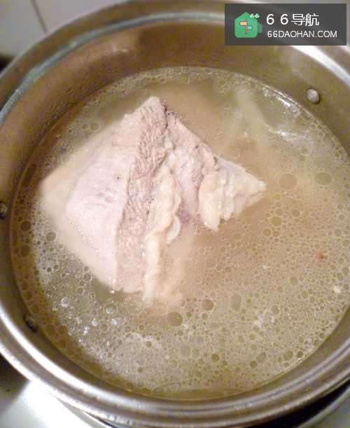 2撇净浮沫,煮至八成熟,取出自然冷却。
