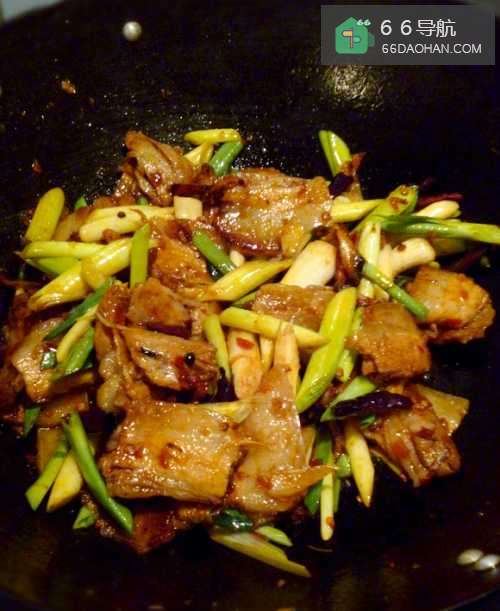 9.入青蒜,点少许料酒,糖调好味道即可出锅。