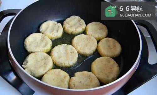 11两面翻动,大约用10分钟,煎到金黄熟透即可。