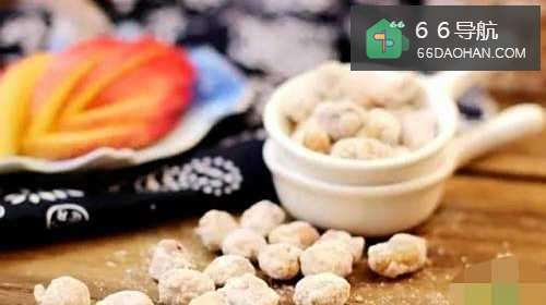 6一边筛一边不停翻拌,让每一粒均匀裹上。