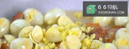 2起锅,锅中倒入适量清水,开大火煮开后下入准备好的适量鹌鹑蛋,继续煮3分钟,3分钟后捞出放入凉水中,待鹌鹑蛋冷却后将外壳剥开备用。