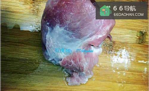 3准备少许瘦肉,将瘦肉洗净,然后切成薄片状,取一个干净的小碗,加入瘦肉片,然后加入盐巴、酱油、料酒、醋等调味品,用手揉搓肉片,让酱料分布均匀,然后放在边上腌制一会。