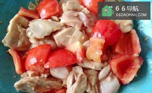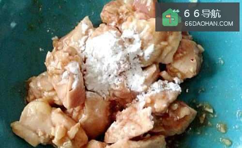 2鸡腿肉切块,放入大容器中,加入所有调味料、蒜末,充分搅拌均匀,再加入太白粉抓匀