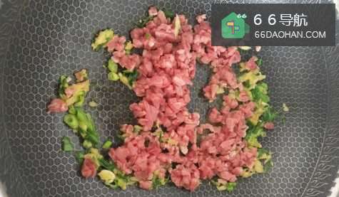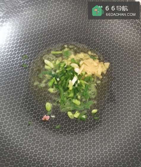 3将油放入不粘锅中,加热,加入切碎的葱和姜,炒至香。