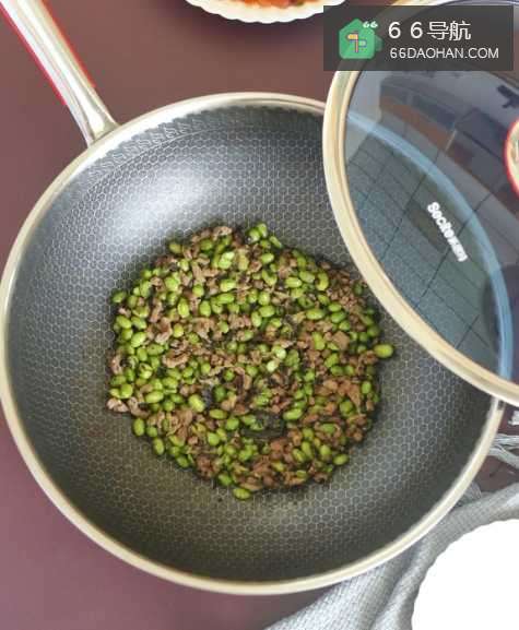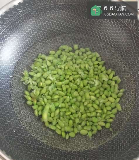 将毛豆烧烤后,在水中煮一会儿,然后在水中放些盐。
