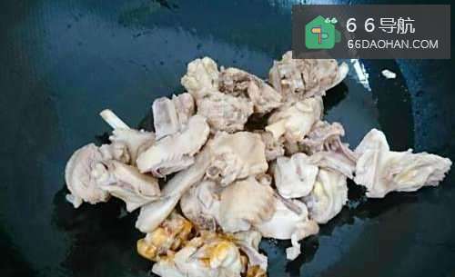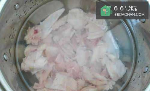 首先,将鸡肉斩块,在流水下冲洗干净后,冷水入锅(不用盖锅盖),水开后瓢去浮沫,焯一下,捞出控水沥干。