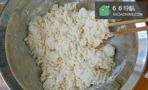 将面粉倒在面盆里,撒1料勺盐,缓缓注入温水,搅拌成絮状后,再揉成表面光滑的面团,盖上湿布静置10分钟。