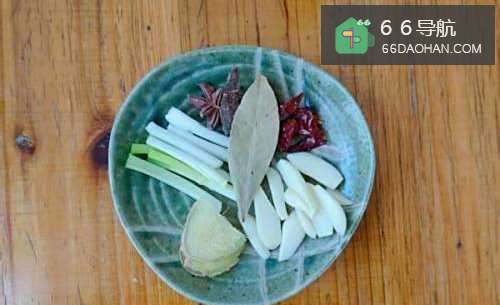 3准备好葱姜蒜,八角,桂皮,香叶以及干辣椒。