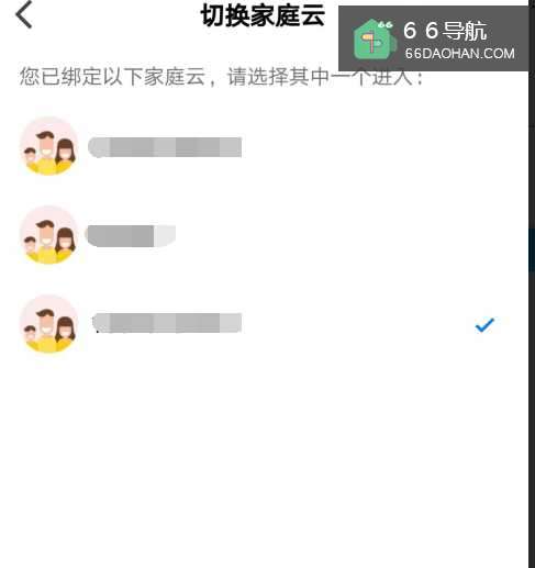 在这个页面,点击你绑定的家庭云就可以切换成功了。