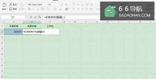 2选择单元格【B2】,输入公式 【=EOMONTH($A$2,0)】,自动计算出月末日期;