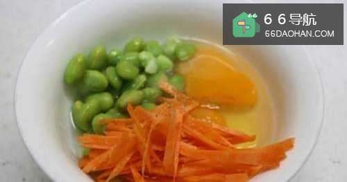 2红萝卜切细丝比较快熟,一起打匀加上少许的盐。