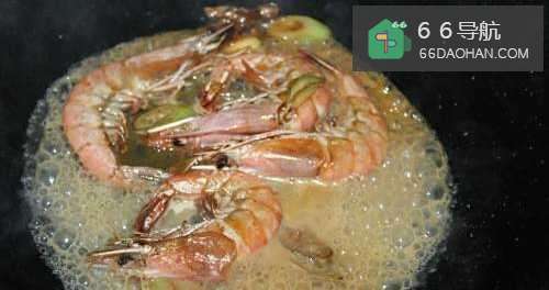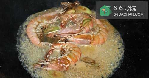 3放入虾翻炒。
