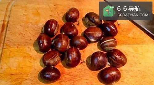 2先在生板栗上切一刀,板栗壳略硬,可注意不要切到手,