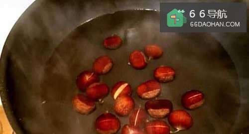 4烧半锅水到沸腾,放一小勺盐,关火、把切好的板栗放进锅里加盖焖烫五分钟。