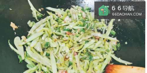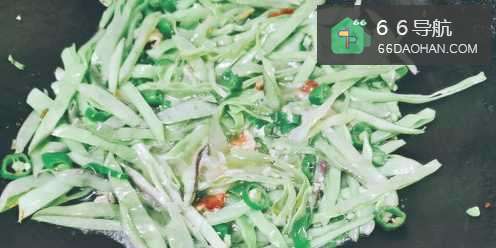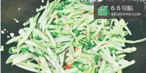 6接下来把棉豆丝放入锅继续翻炒半分钟