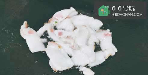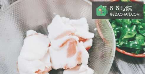 3五花肉切成片,青辣椒切小段。