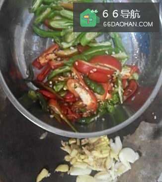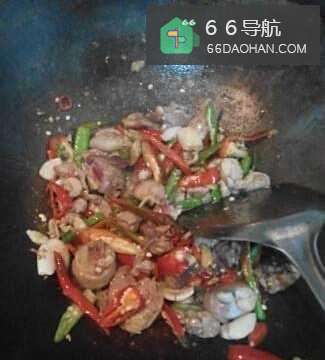 44、加入姜,蒜头继续翻炒1分钟,然后加入辣椒,炒2分钟,加入盐,可以少加盐再加酱油。