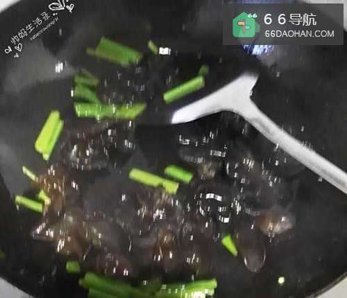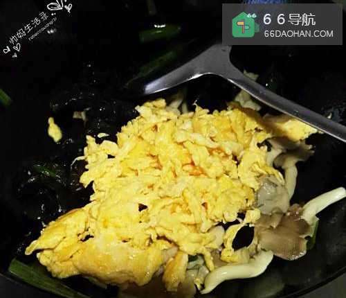 5倒入之前炒好的海鸭蛋,继续翻炒。