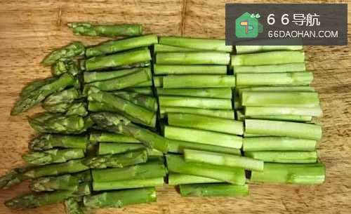 2芦笋将较老根部切除不用,再刨去表皮,接着切段