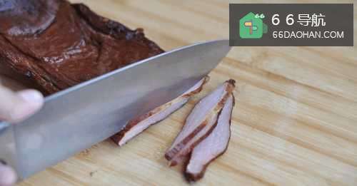2把泡好的腊肉切薄片,生姜切丝,蒜苗清洗干净切段备用。