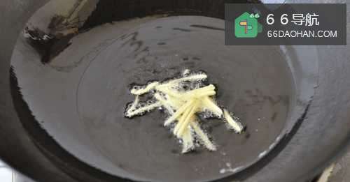 3锅里倒入植物油,油热后放进姜丝爆香。