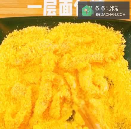 5●第五步倒入适量面包糠,继续抓匀面包糠和鸡柳。