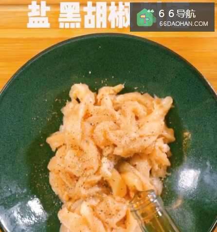 2●第二步准备一个碗,将切条的鸡柳装入碗中,并放入少量盐、黑椒粉和料酒并充分抓匀。