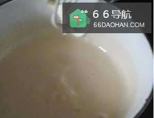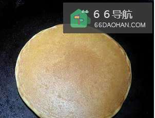 5不粘平底锅烧热后调小火,舀入一勺面糊,盖上锅盖。