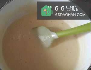 4分两次将蛋糊加入第一步混合好的面糊中,用海绵蛋糕的翻拌手法混合均匀。