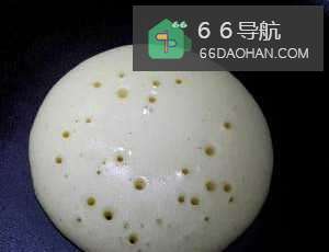 当面糊表面出现大大小小的气孔,并且基本凝固时,将松饼翻面。