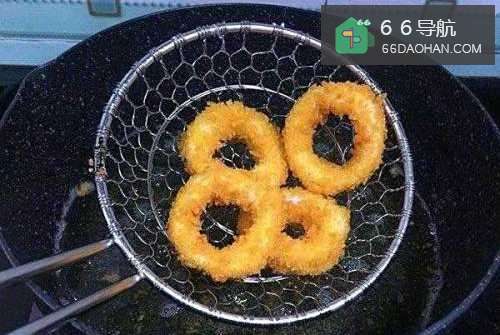 5起锅热油,放入鱿鱼圈,中小火炸至表面金黄即可捞出控油。