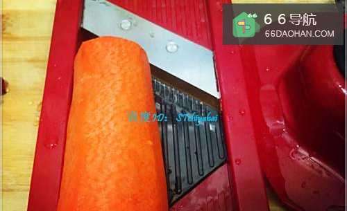 2将去皮的胡萝卜用推丝器加工成胡萝卜丝备用。