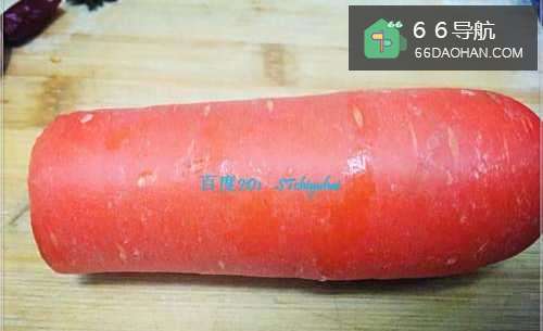 准备半根胡萝卜,将其洗净,然后用皮削削去外皮,去头去尾。