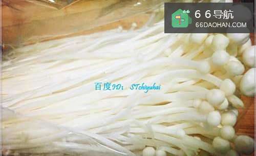 3准备一包金针菇,将金针菇头部切去,然后过水清洗几遍。