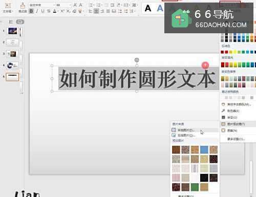 在编辑演示文稿时,为了文稿的整体效果,有时候需要设置文本效果,那怎么制作呢?本经验介绍在WPS PPT应用中,如何制作圆形填充文本的操作方法。