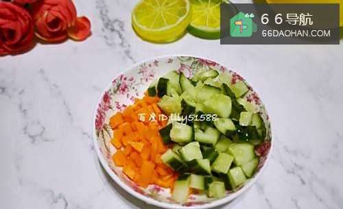 4准备好少许胡萝卜和黄瓜切丁备用。