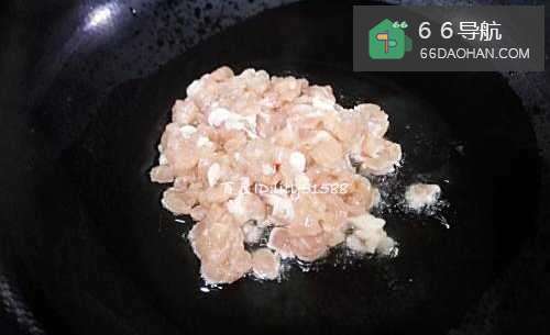 5热锅放油,把肉末放进锅里大火炒1分钟。