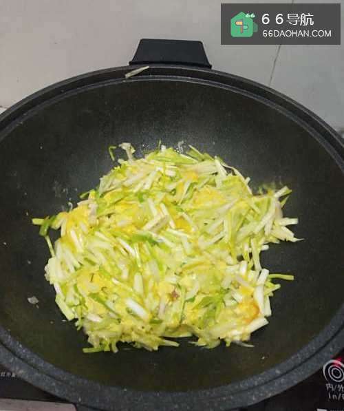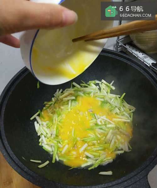 6翻炒均匀后,倒入搅拌好的鸡蛋。